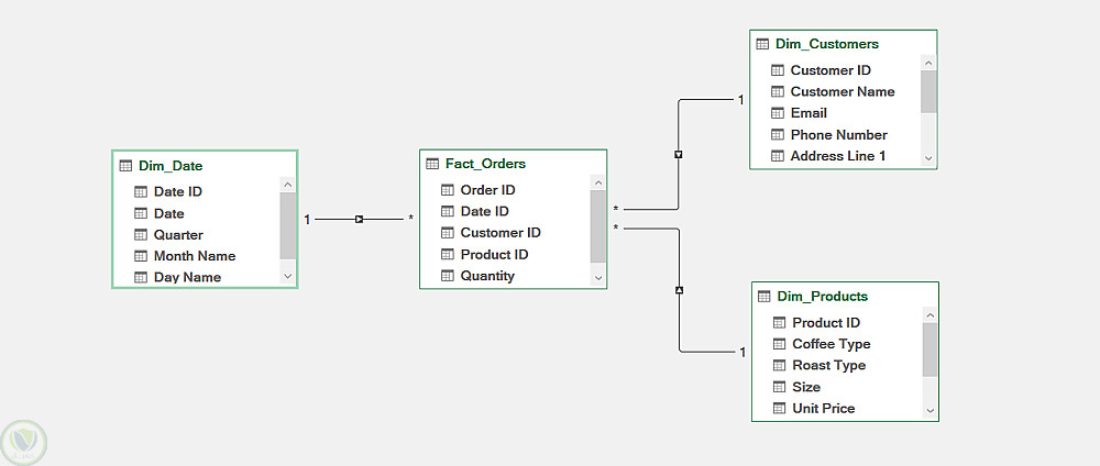 لوحة تحليل مبيعات القهوة باستخدام Excel