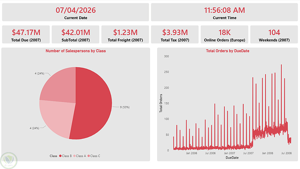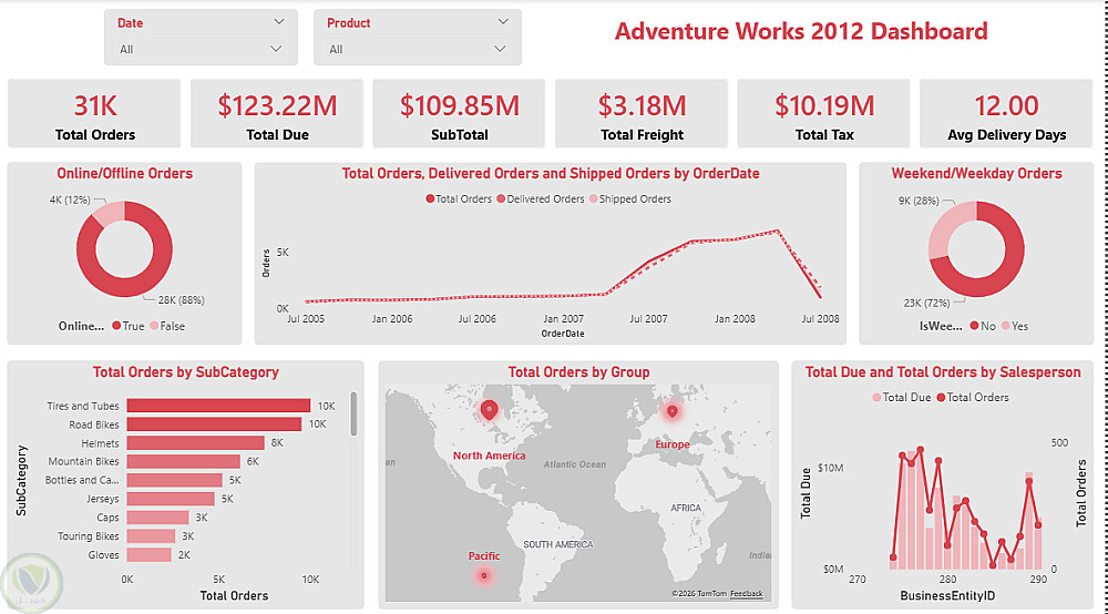 تحليل بيانات مبيعات خاصة بداتا Adventure Works الخاصة بالاوردرات و المبيعات خلال سنة 2012 باستخدام 2 dashboards تفاعلية
