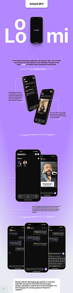 تطبيق تواصل اجتماعي مصغر عبر الدردشة والمكالمات، نسخة مصغرة تتناسب مع متطلبات التحدي. اخترت اسم "لومي" لأنه سهل النطق وسلس.