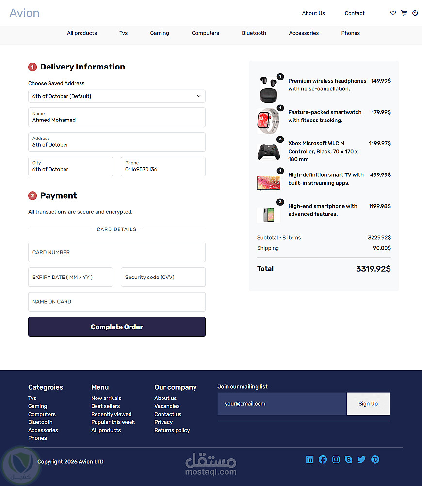تصميم وتطوير متجر إلكتروني متكامل لبيع الأجهزة الإلكترونية