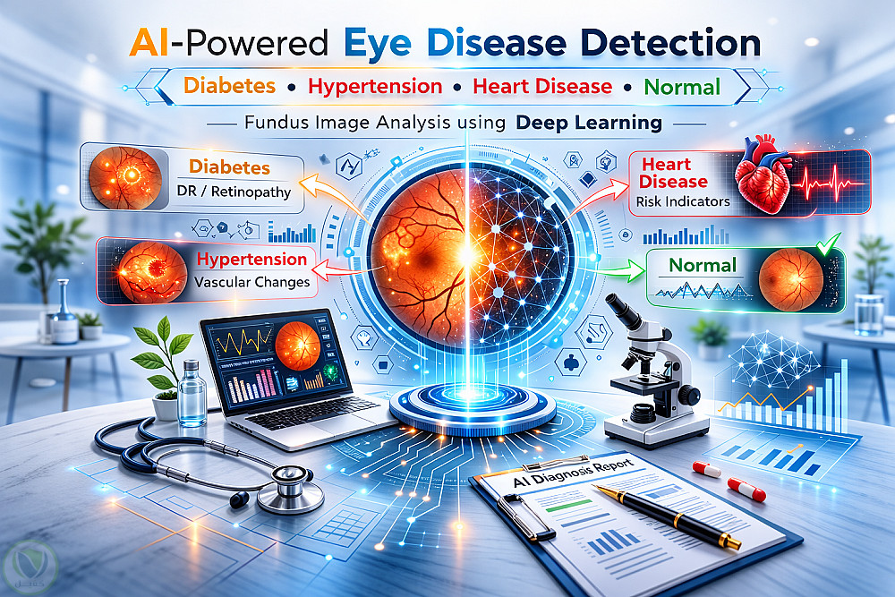 يهدف هذا المشروع إلى استخدام تقنيات Deep Learning لتحليل صور قاع العين واكتشاف أنماط قد تشير إلى بعض الأمراض المزمنة مثل السكري وارتفاع ضغط الدم وأمراض القلب، مع دعم الكشف المبكر والمساعدة في التشخيص.