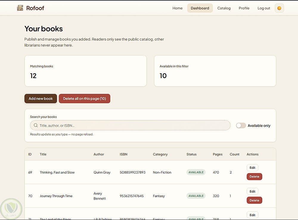 تطوير لوحة تحكم أمين المكتبة لإدارة الكتب ونشرها للقراء.