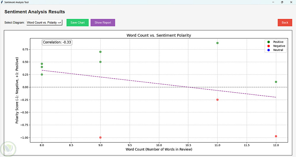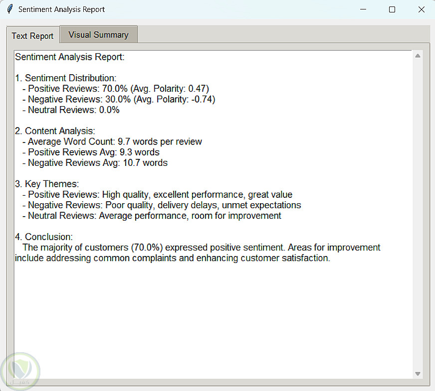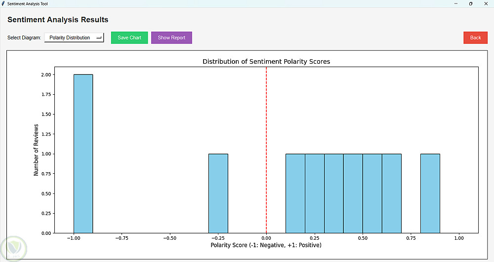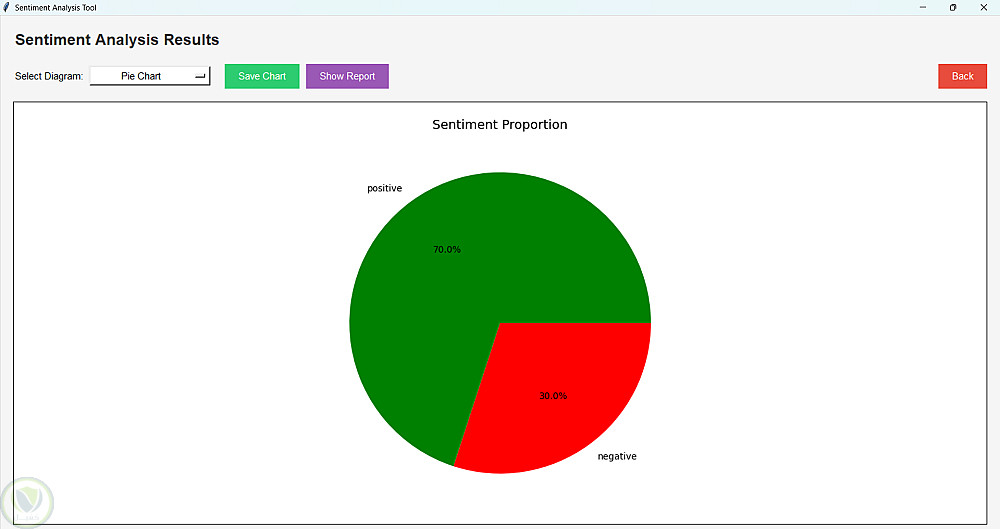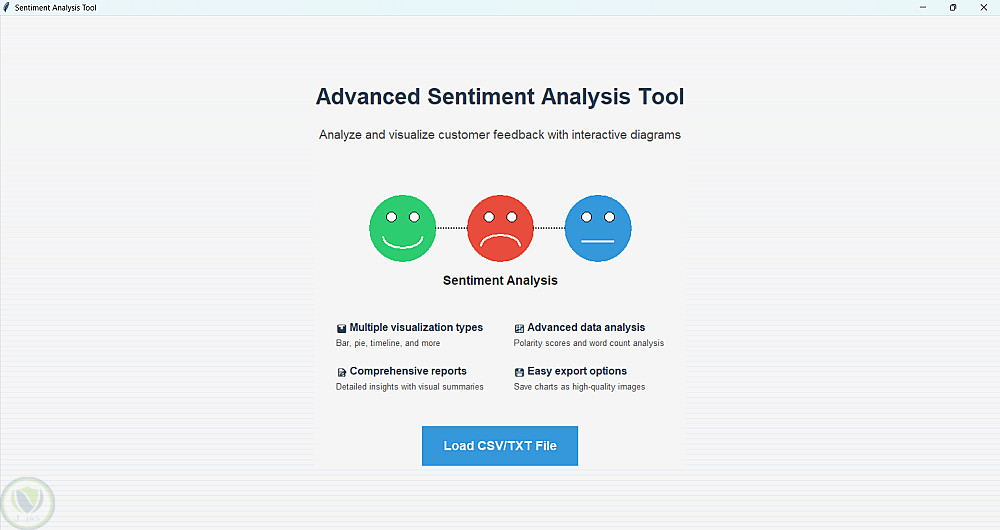 تطبيق تفاعلي بواجهة رسومية (GUI) لتحليل مشاعر آراء وتقييمات العملاء. يتيح تحميل ملفات بصيغة CSV أو TXT، ثم يقوم تلقائياً بتصنيف التقييمات إلى إيجابية أو سلبية أو محايدة.