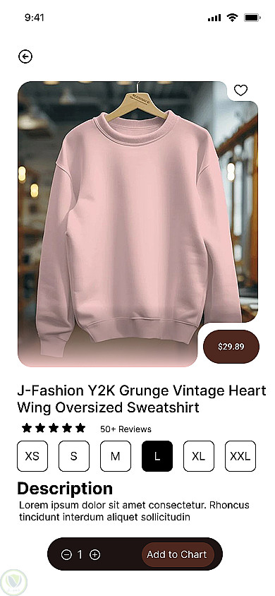 شاشة تفاصيل المنتج (Product Details): توزيع استراتيجي للعناصر؛ حيث تظهر الصور بشكل بارز، تليها خيارات المقاسات بوضوح، مع زر "أضف إلى السلة" بارز (Floating Action Button) لزيادة معدل التحويل.