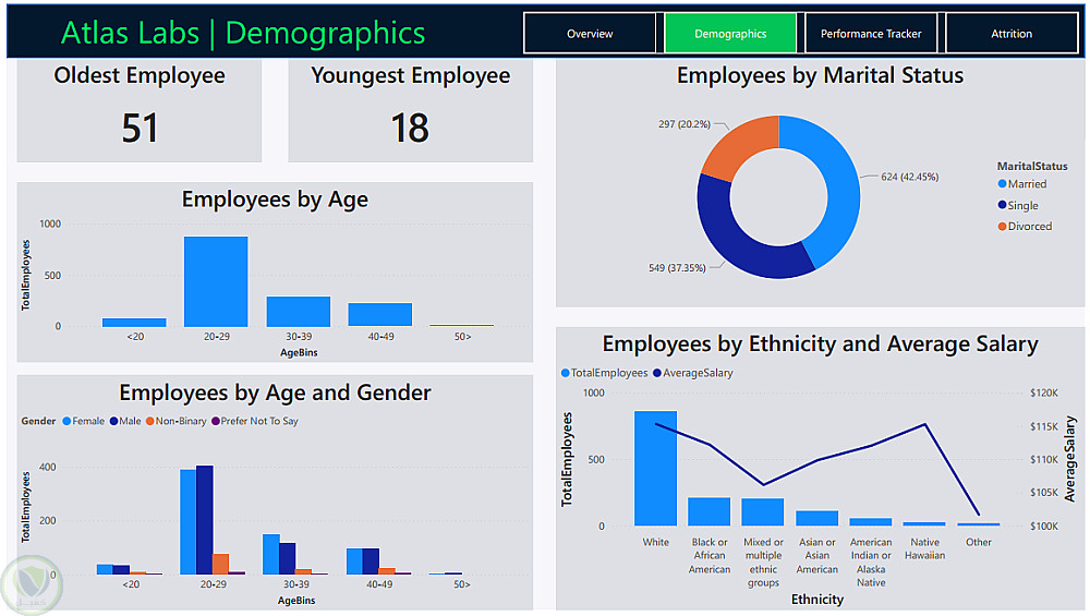 Demographics: تحليل العلاقة بين ترك العمل والعوامل الديموغرافية مثل العمر، النوع، والحالة الاجتماعية.