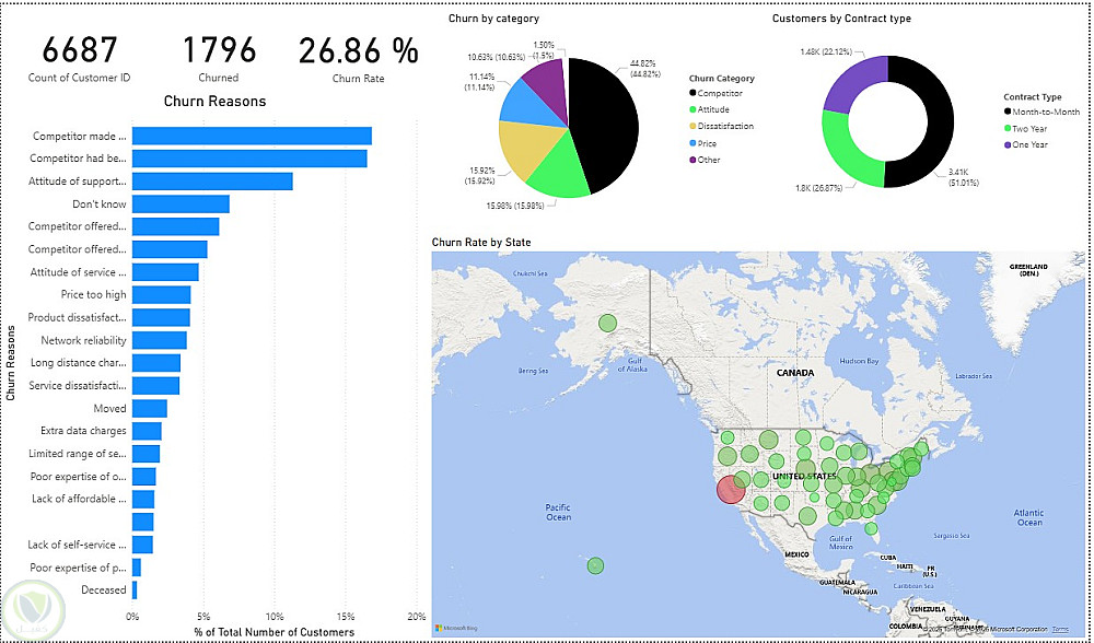 قمت بتحليل بيانات العملاء باستخدام Power BI بهدف فهم أسباب فقدان العملاء (Churn) واستخراج Insights تساعد في تحسين الاحتفاظ بهم.