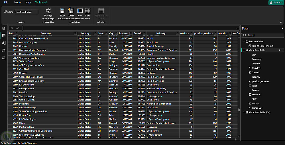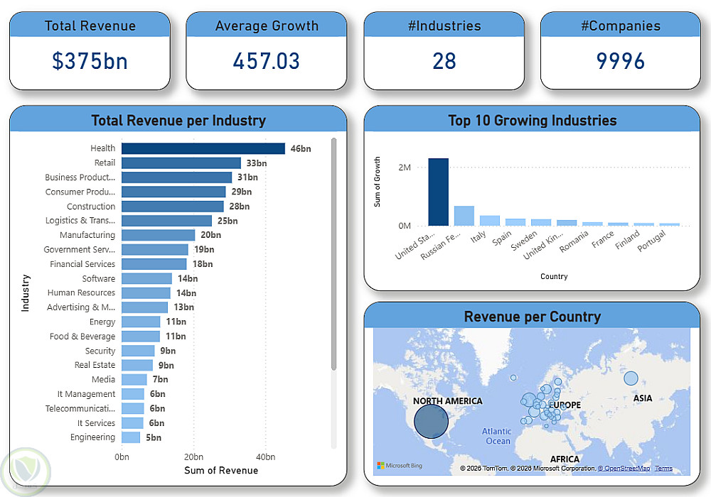 - تحليل شامل لبيانات الشركات والإيرادات (Revenue, Profit, Growth)