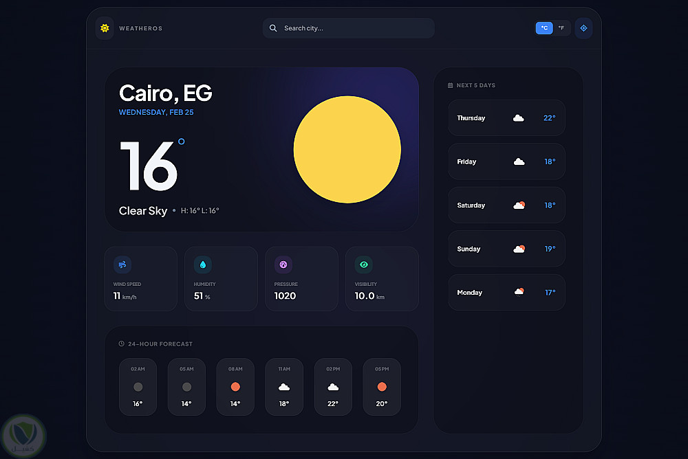 WeatherOS – تطبيق طقس تفاعلي لمتابعة الأحوال الجوية بشكل فوري
