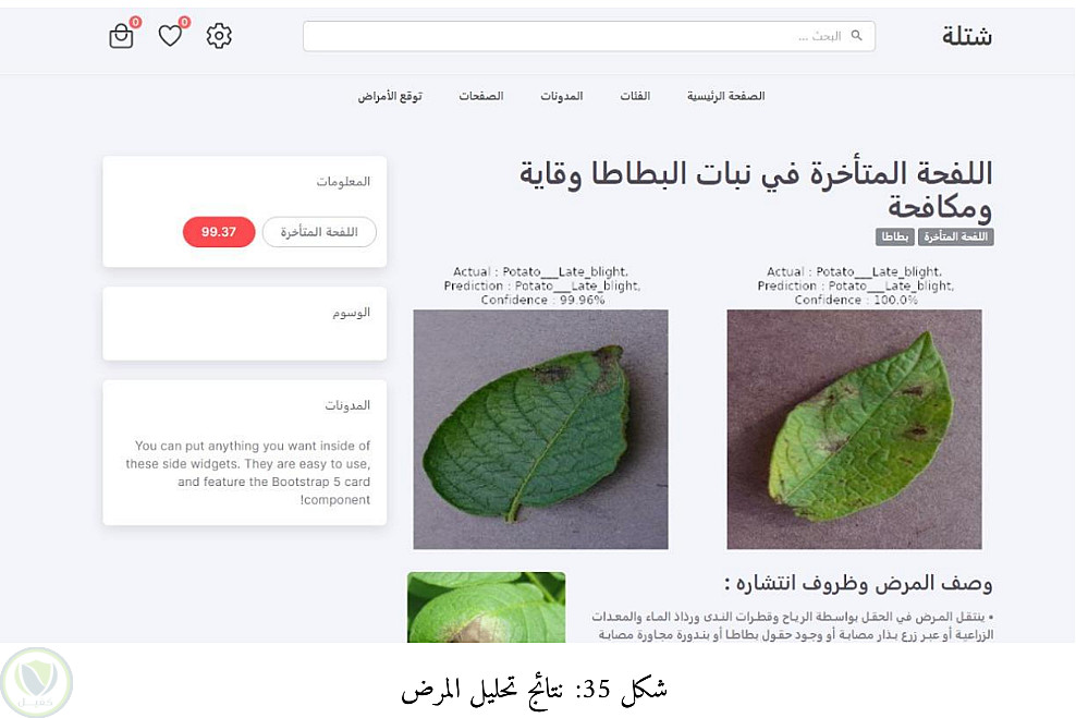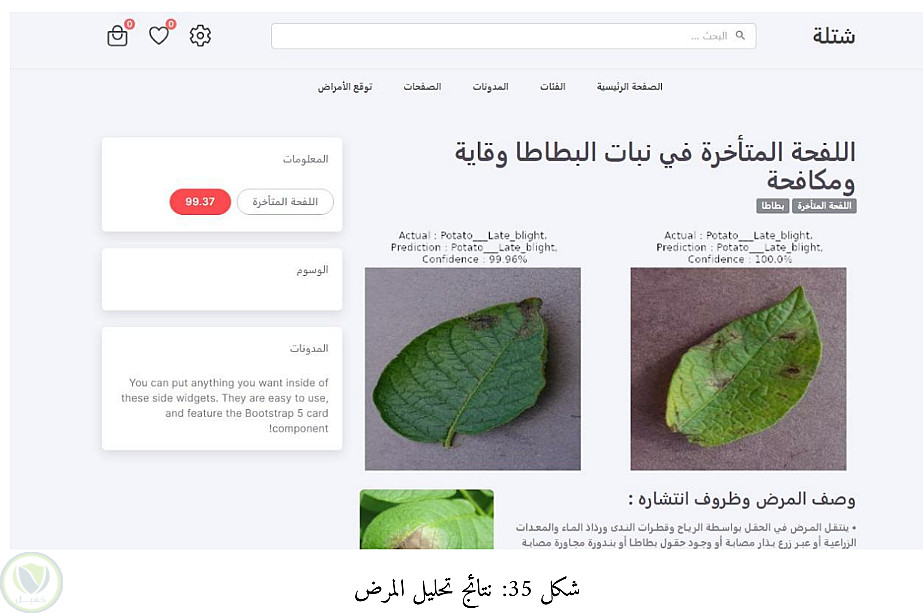 • فحص الأمراض بالذكاء الاصطناعي: تم بناء وتدريب نموذج تعلم عميق (CNN) باستخدام Python وربطه بالمنصة عبر (FastAPI)، مما يتيح للمزارعين رفع صور أوراق النباتات للحصول على تشخيص فوري للأمراض.
