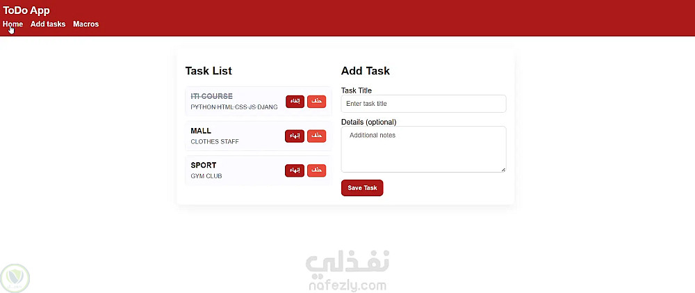 * إضافة مهام جديدة بسهولة من خلال نموذج واضح