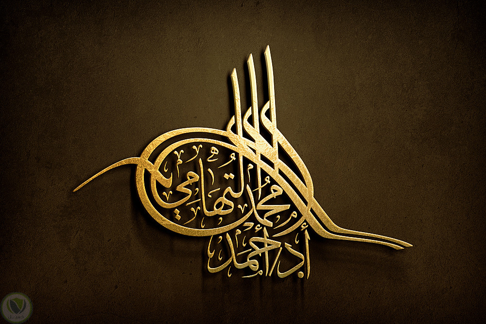 أعمال بالخط العربي (ثلث ،وديواني) في أشكال مختلفة (قطرة ماء ،ودائري ،وسطري ،وطغراء)