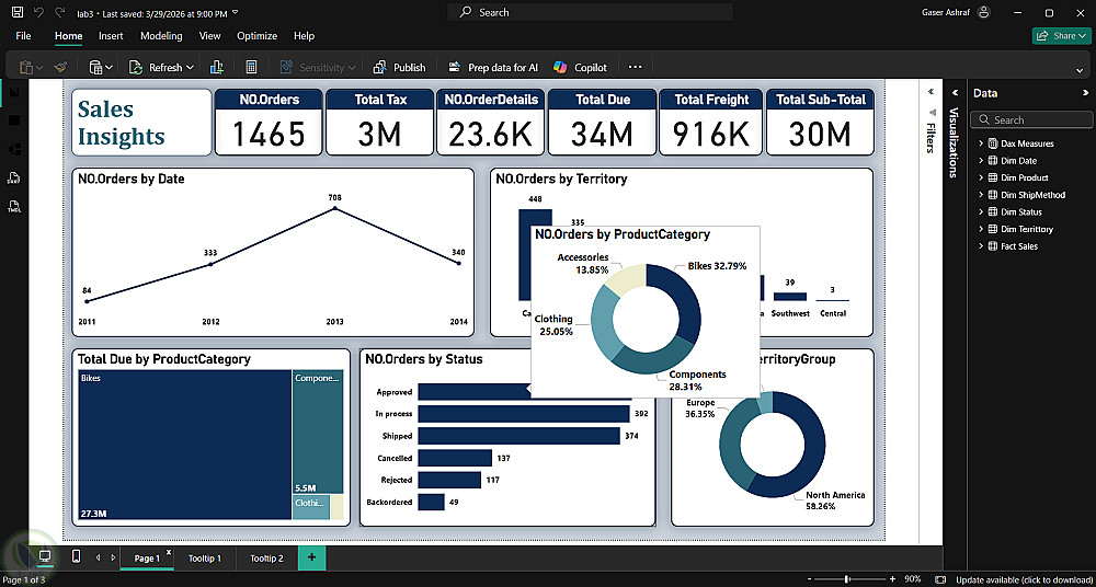 لقد قمت بتنفيذ مشروع تحليل بيانات Adventure Works باستخدام Power BI لتحويل البيانات الخام إلى لوحة تحكم تفاعلية (Dashboard) تساعد على تحليل أداء المبيعات واتخاذ قرارات مبنية على البيانات.