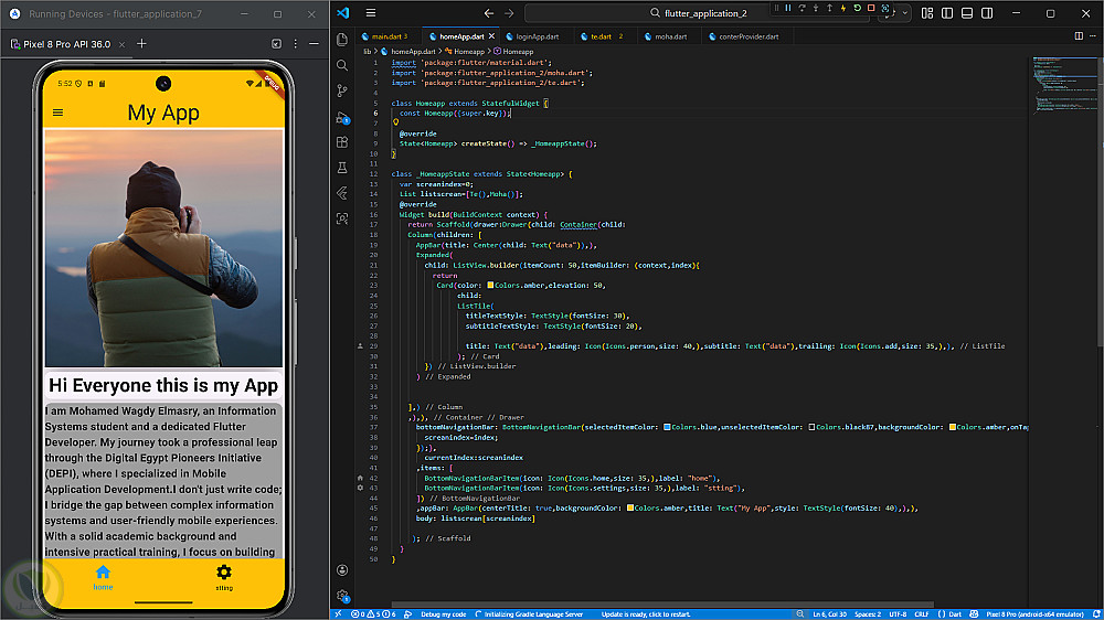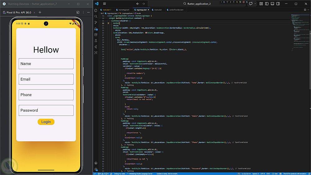 تطبيق Flutter يركز على تقديم تجربة مستخدم (UX) احترافية من خلال واجهة تسجيل دخول مؤمنة بنظام تحقق، وشاشة رئيسية منظمة لعرض البيانات. تم بناء التطبيق مع التركيز على مرونة الواجهات وتناسق الألوان.
