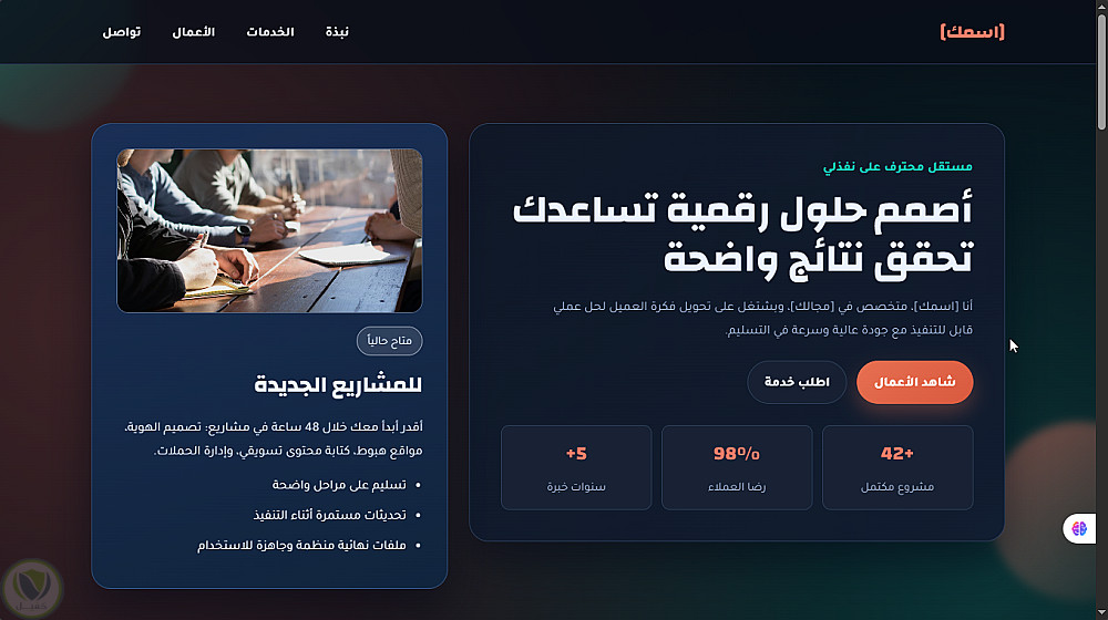 الموقع يهدف إلى مساعدة المستقلين في عرض مهاراتهم بشكل احترافي وجذب عملاء جدد.
