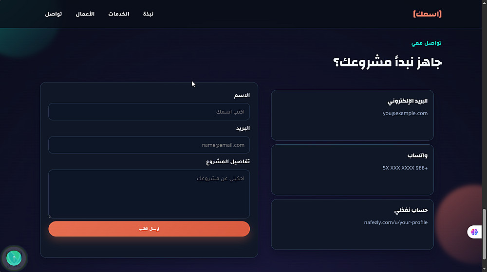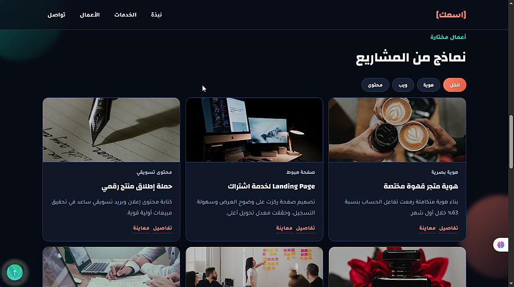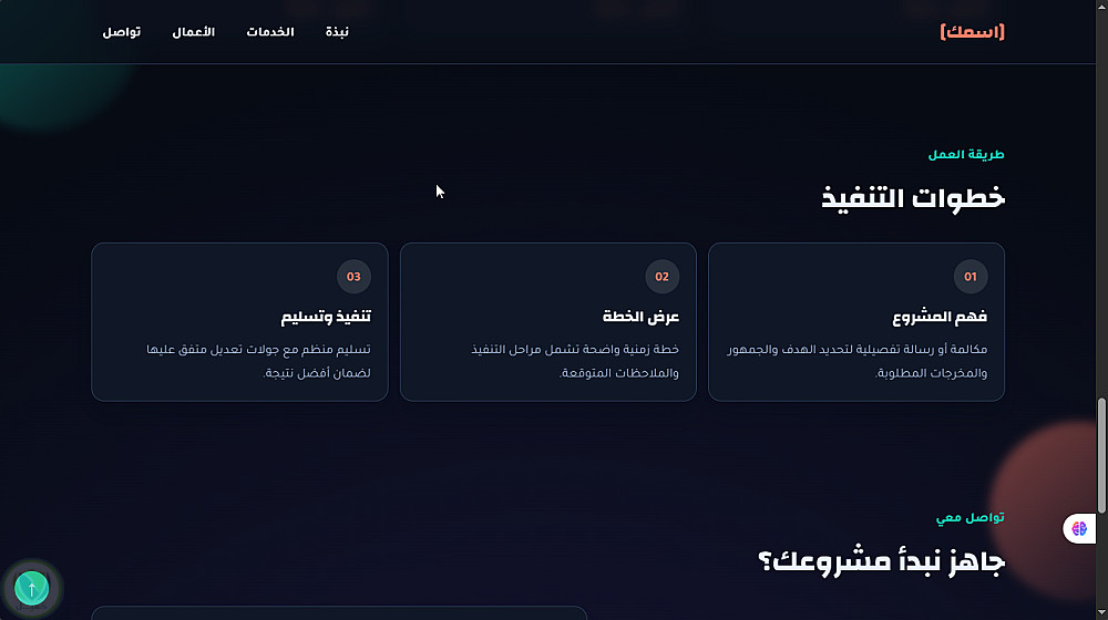 قمت بتصميم وتنفيذ موقع Portfolio احترافي لمستقل يعرض خدماته وأعماله بشكل منظم وجذاب، مع التركيز على تجربة المستخدم وسهولة التصفح وزيادة معدل التحويل.