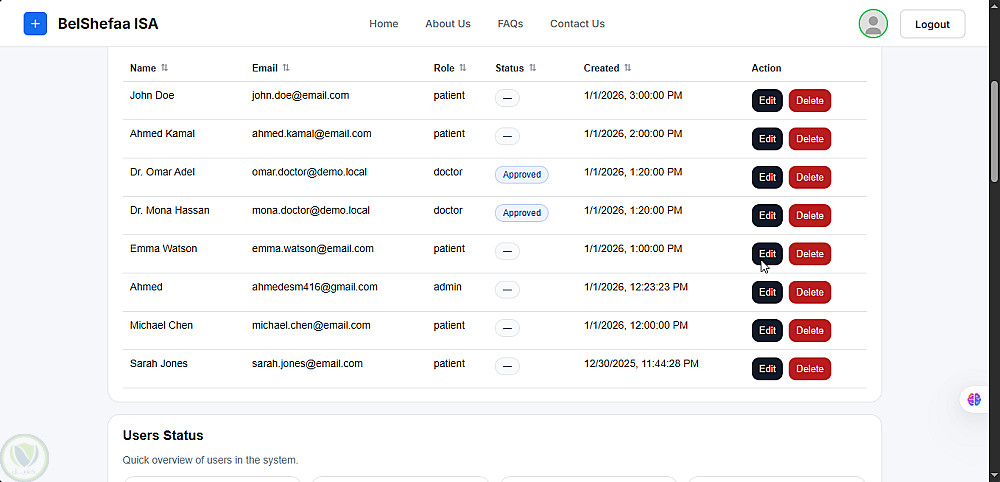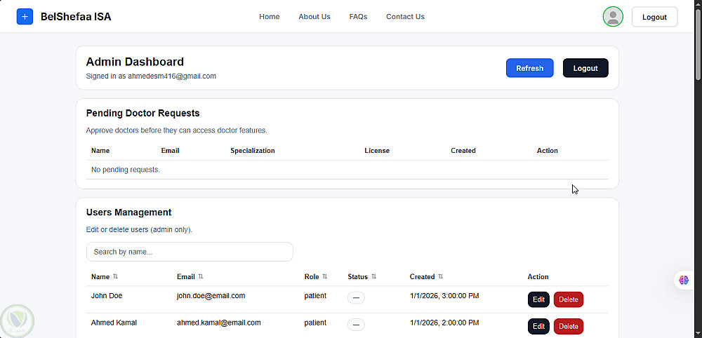 نظام إدارة رعاية صحية (BelShefaa ISA) لحجز المواعيد وإدارة العيادات