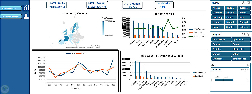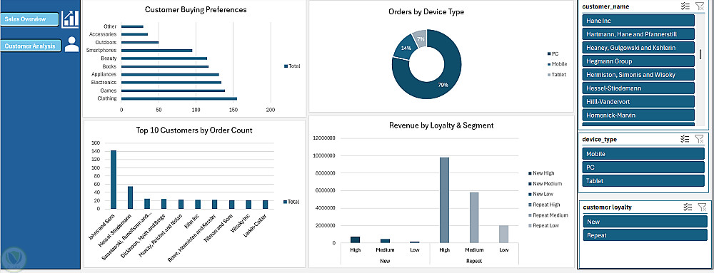 قمت بتحليل سجلات مبيعات ضخمة (Sales Export) وتحويل البيانات الخام إلى تقارير تفاعلية تساعد في اتخاذ قرارات تجارية مدروسة.