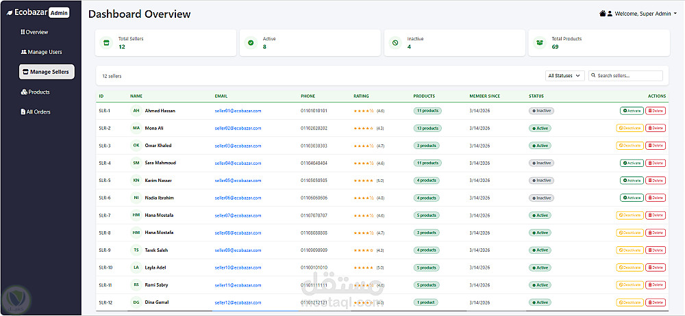 واجهة شاملة لمتابعة البائعين المشتركين في المنصة.