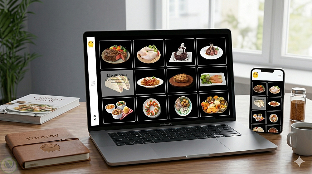 موقع ويب يتيح للمستخدم استكشاف أنواع مختلفة من الأطعمة من خلال تصنيفات متعددة، مع عرض تفاصيل كل وصفة مثل المكونات وطريقة التحضير. كما يوفر روابط للمصدر الأصلي للوصفة وفيديوهات YouTube مدمجة لشرح خطوات الطهي بشكل مرئي وسهل.
