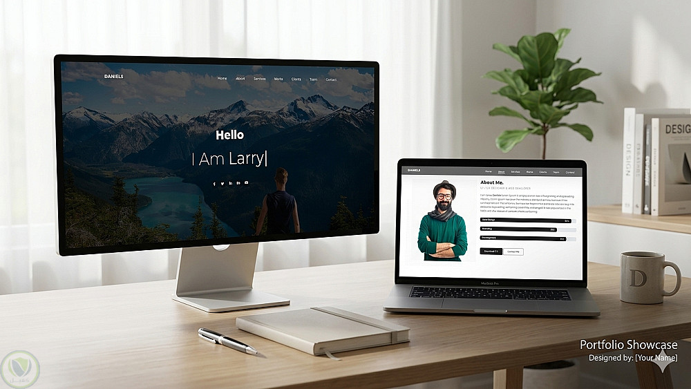 تم العمل على تصميم وبناء موقع إلكتروني تعريفي (بورتفوليو) مخصص للمصممين والمطورين، يهدف إلى إبراز الهوية الشخصية والمهارات التقنية بأسلوب عصري وبسيط.