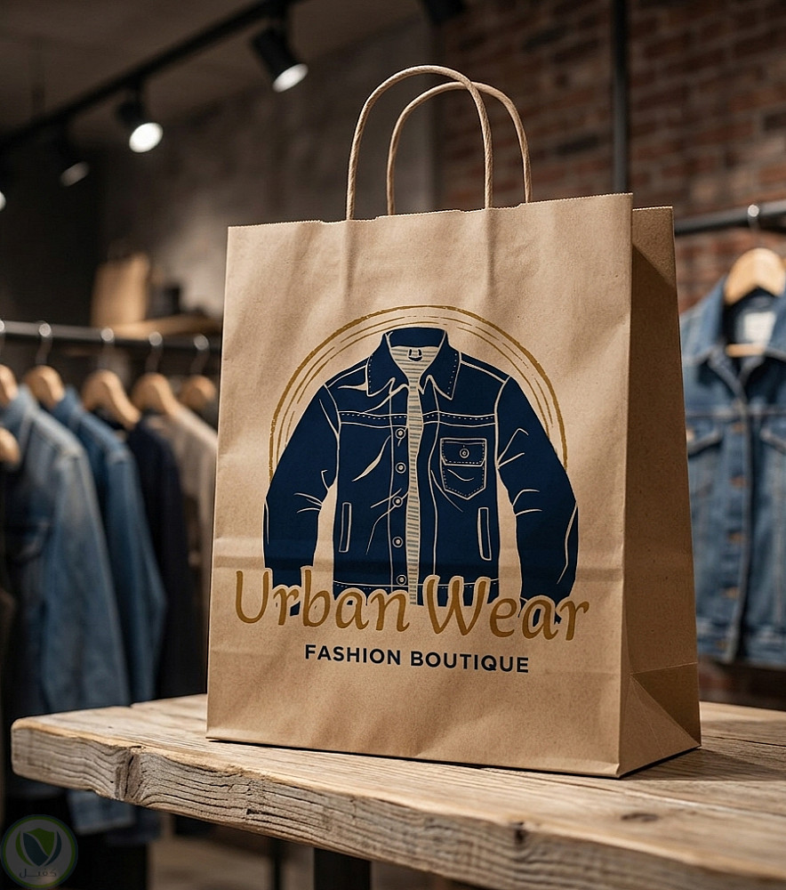تصميم شعار مبتكر لمتجر ملابس (Boutique) يدمج بين رسمة جاكيت الدنيم الكلاسيكية والخطوط العصرية الذهبية، ليعكس الفخامة والأناقة. قمت بتصميم الشعار وتطبيقه على "موكاب" شنطة ورقية (Paper Bag) لتوضيح كيف يبدو التصميم في الواقع ولتسهيل رؤية الهوية البصرية كاملة للعميل. تم التركيز على تناسق الألوان (الكحلي والذهبي) لجذب العملاء الباحثين عن التميز