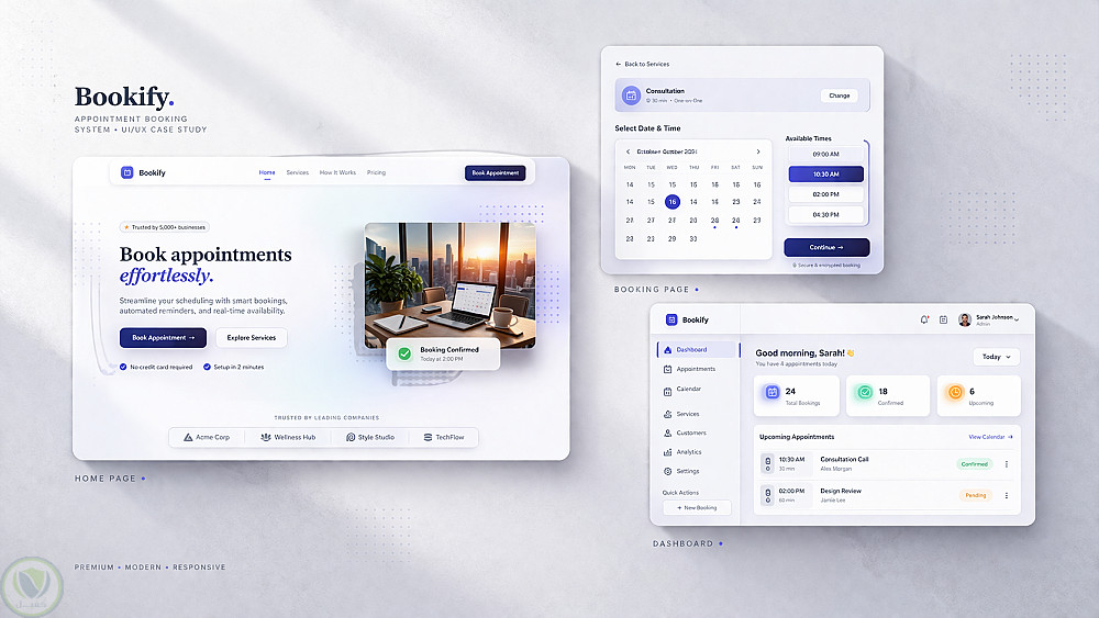 موقع Bookify هو منصة حديثة ومتطورة تتيح للمستخدمين حجز المواعيد بسهولة وبدون تعقيد، مع تجربة استخدام سلسة وتصميم جذاب يعكس الاحترافية والثقة.