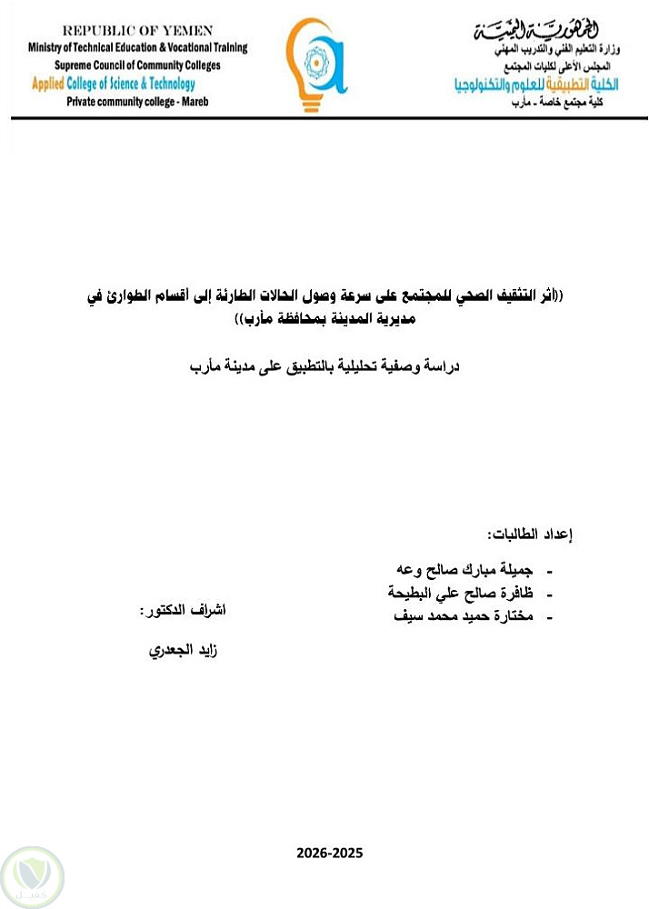 بحث بعنوان [ اثر التثقيف الصحي على سرعة وصول الحالات الطارئة إلى اقسام الطوارئ في محافظة مأرب اليمنية]