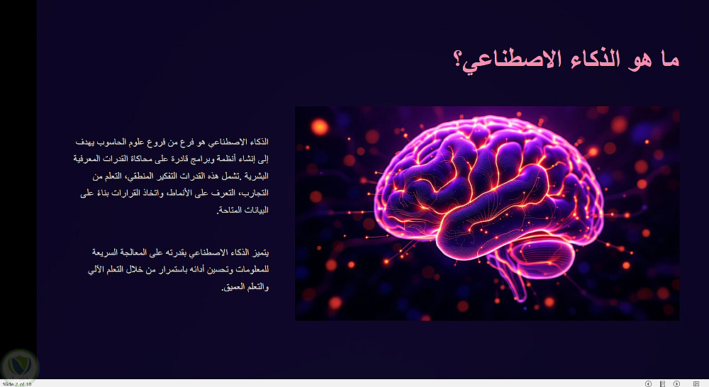 تصميم عرض تقديمي احترافي عن الذكاء الاصطناعي