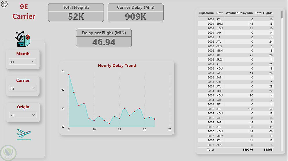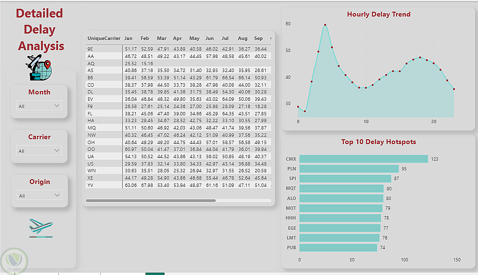 تحليل تفاعلي متقدم لتأخير الرحلات الجوية باستخدام Power BI