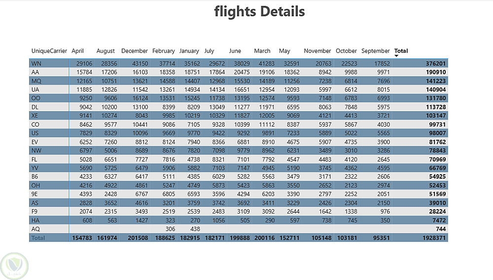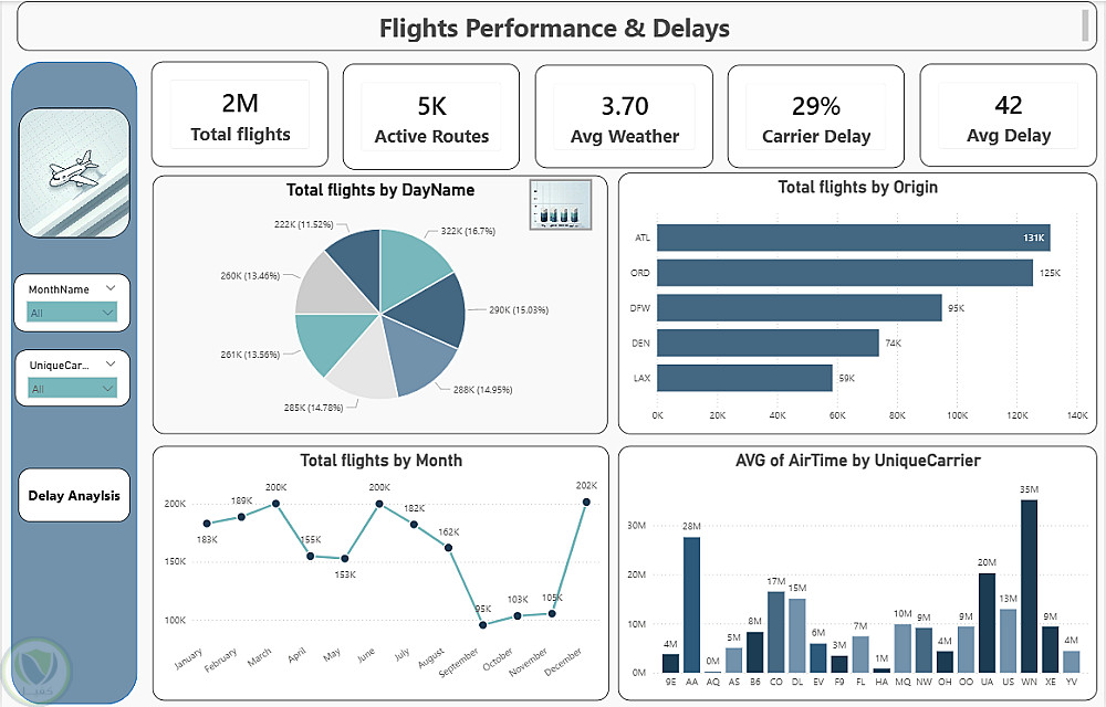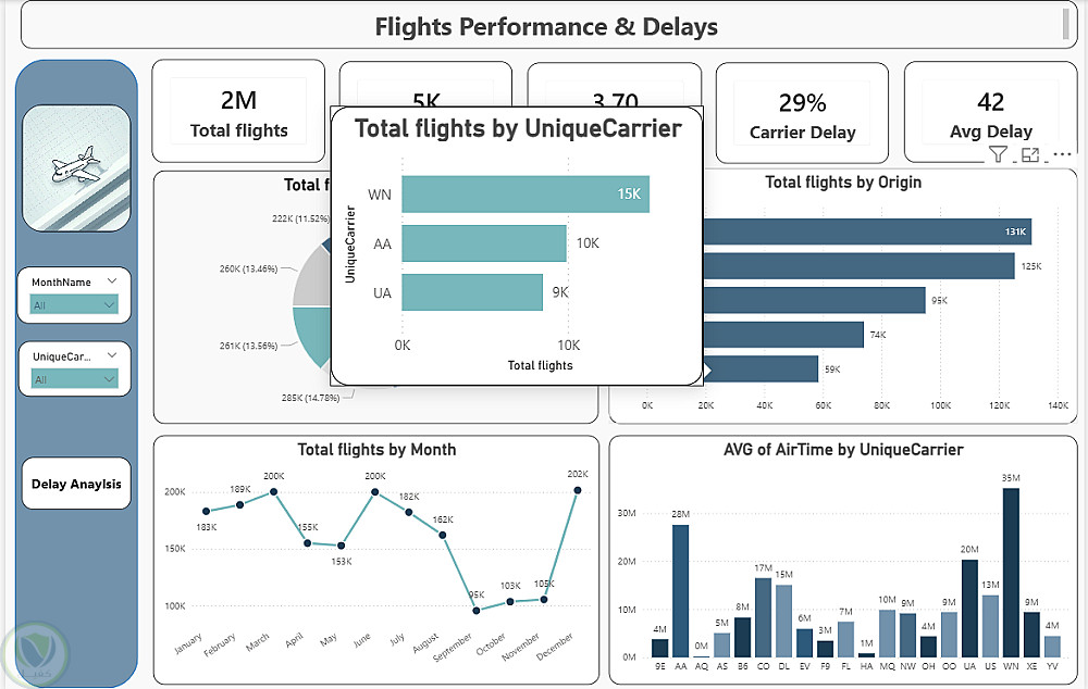 لوحة تحكم ذكية لتحليل أداء شركات الطيران