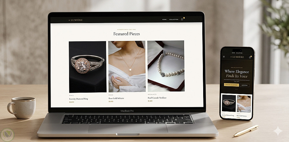 إنشاء واجهة احترافية تساعد أي متجر مجوهرات على عرض منتجاته بطريقة مميزة وجذابة للعملاء.