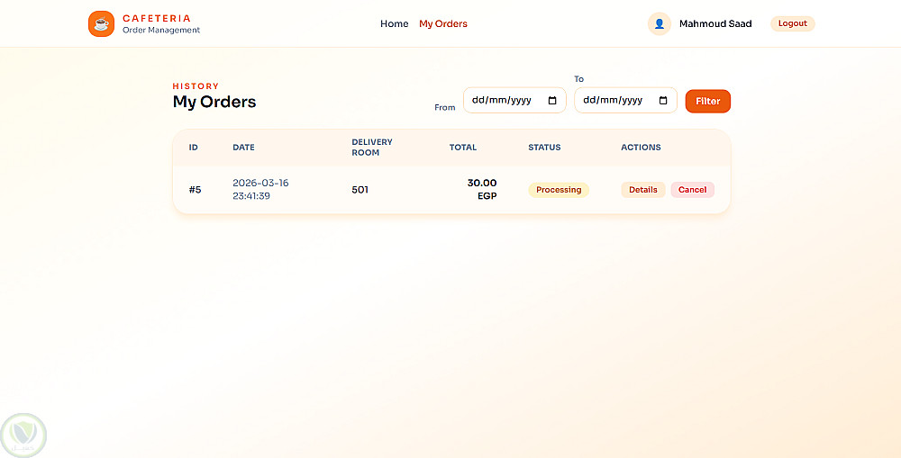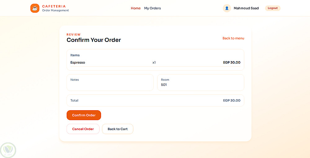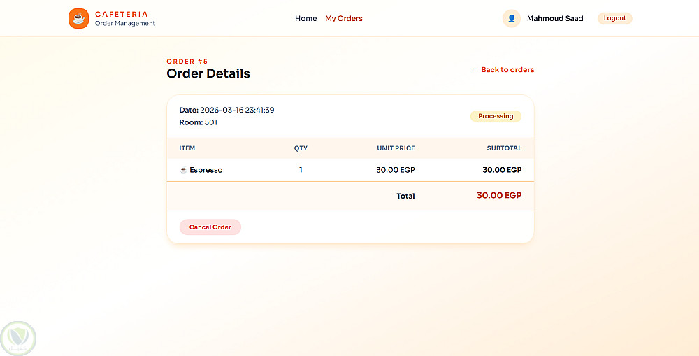 تم بناء نظام جاهز للاستخدام الفعلي يساعد على تحسين إدارة الطلبات داخل الكافيتريا وتقليل العمليات اليدوية مع توفير تحكم كامل للإدارة.