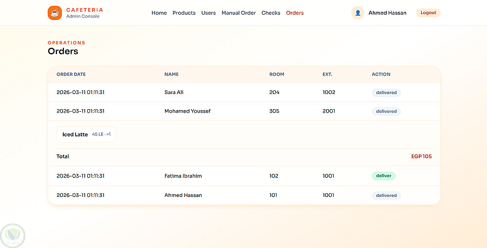 قمت بتطوير نظام ويب متكامل لإدارة الكافيتريا مخصص للاستخدام الداخلي داخل الشركات، يهدف إلى تسهيل عملية طلب المنتجات وتنظيم إدارة الطلبات بشكل احترافي.