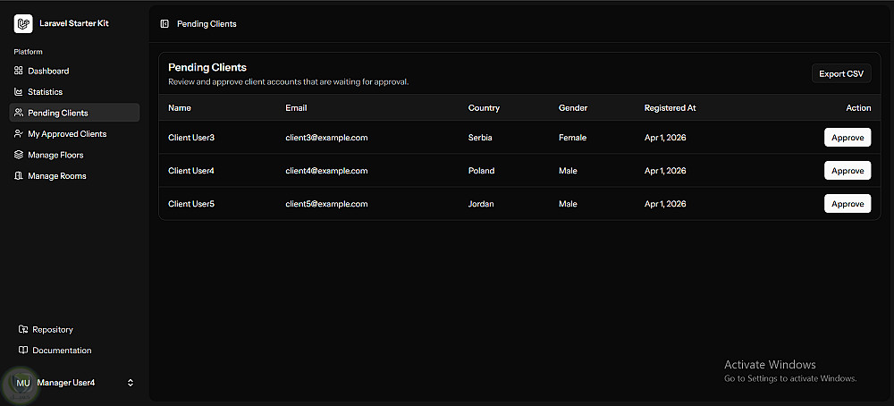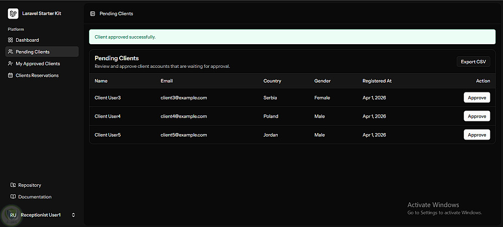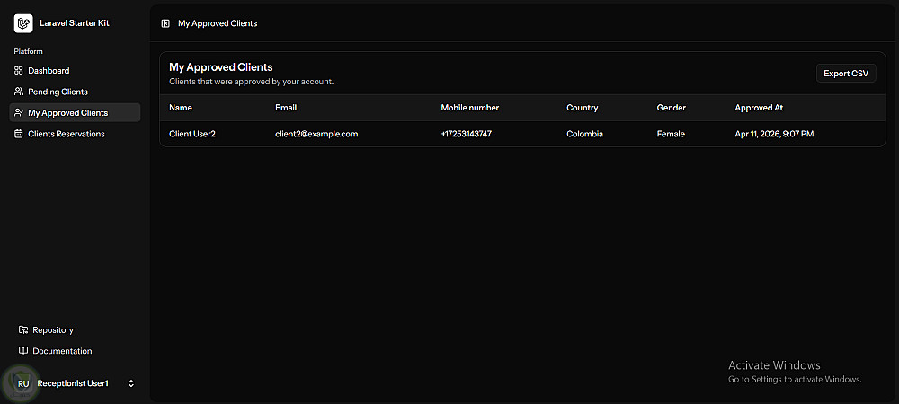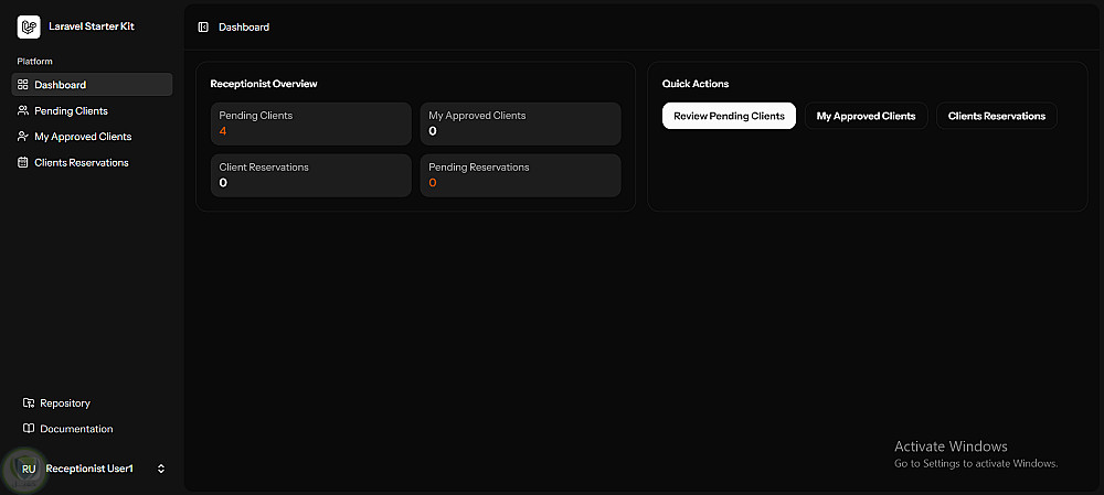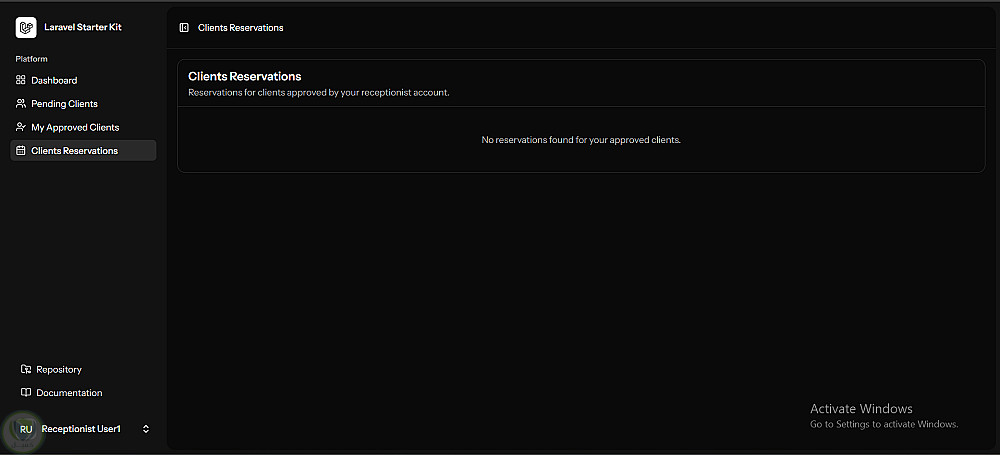 نظام صلاحيات متعدد الأدوار (Admin, Manager, Receptionist, Client)