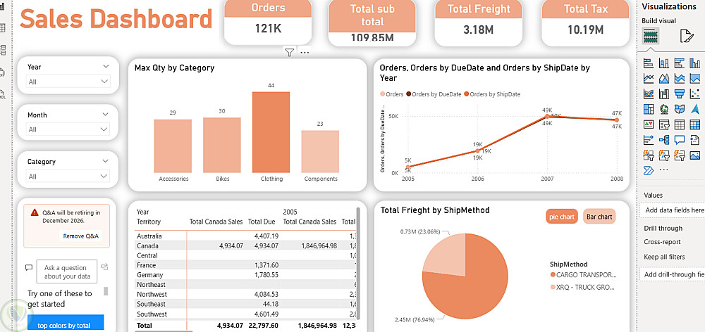 تم تصميم هذه اللوحة التفاعلية (Dashboard) باستخدام Power BI لتحليل أداء مبيعات شركة تجارية، حيث تهدف إلى تحويل البيانات الضخمة إلى رؤى بصرية واضحة تدعم اتخاذ القرار.
