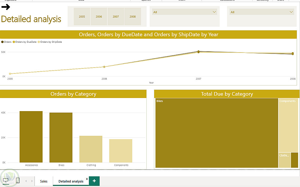Complex Slicers: فلاتر متعددة (Year, Territory, Category) لدقة متناهية في عرض البيانات.