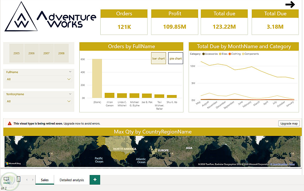 تحليل شامل لبيانات شركة "AdventureWorks" العالمية، يربط أداء المبيعات بالمواقع الجغرافية وتتبع سلوك العملاء زمنياً، مع تقديم تجربة مستخدم (UX) مرنة للوصول لأدق التفاصيل بضغطة زر.