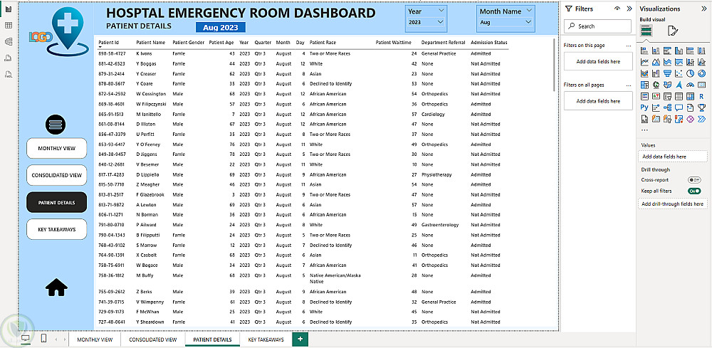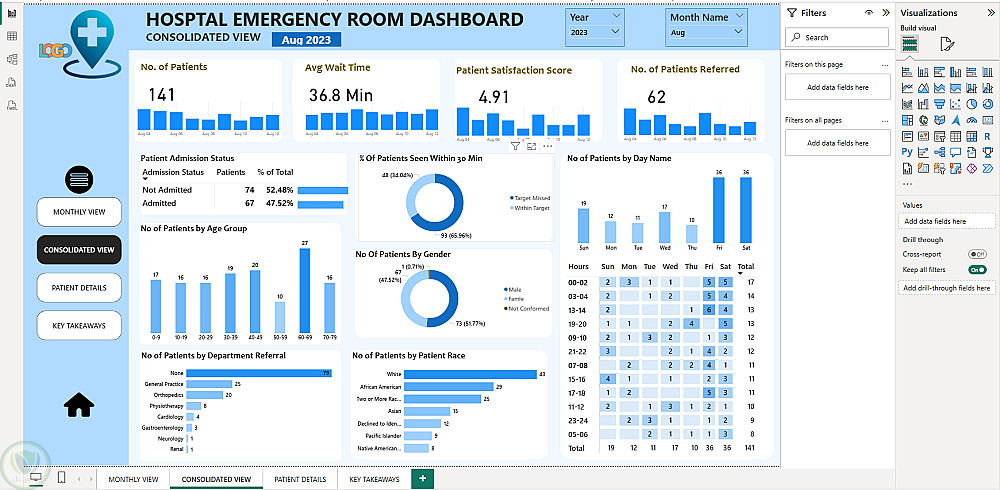 لوحة معلومات غرفة الطوارئ في المستشفى – مشروع Power BI