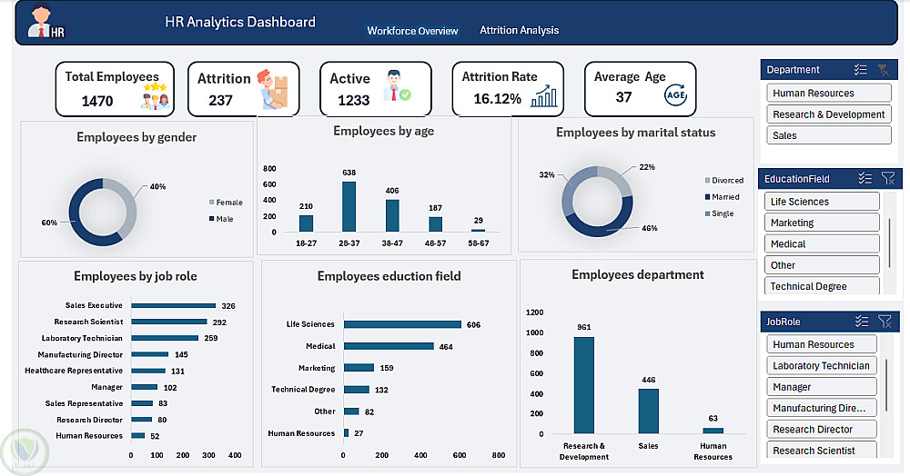 لوحة مؤشرات تفاعلية لتحليل بيانات الموارد البشرية (HR Analytics Dashboard)