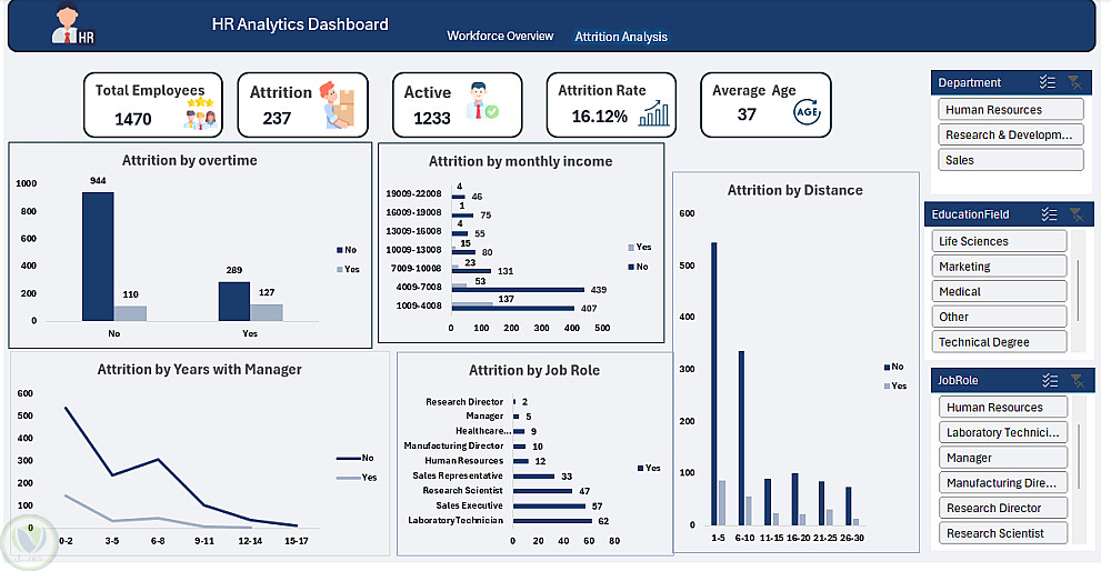 الهدف: تحليل استقالات الموظفين (Attrition) وتحويل البيانات لقرارات استراتيجية لتقليل دوران العمالة.