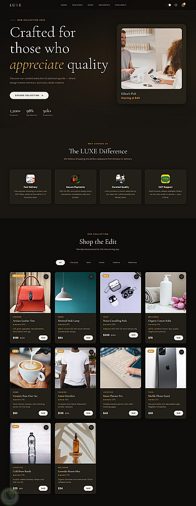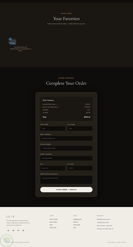 المشروع عبارة عن صفحة تحتوي على أقسام مختلفة لعرض المنتجات و المميزات والمنتجات المفضلة، بالإضافة إلى نموذج لإتمام الطلب مع تصميم متجاوب يعمل على مختلف أحجام الشاشات.