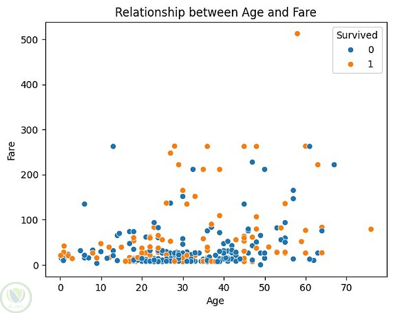 تحليل العلاقات: دراسة العلاقة بين العمر وسعر التذكرة وتأثيرهما على فرص النجاة باستخدام الـ Scatter Plot.