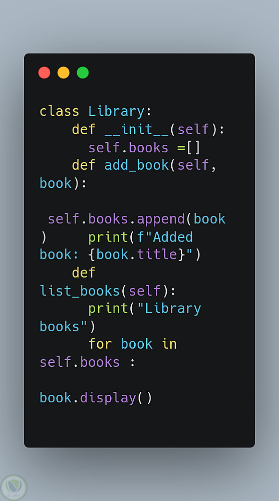 بناء الفئات (Classes): إنشاء Class لكل من Book و Library لتمثيل البيانات والعمليات بشكل منطقي.