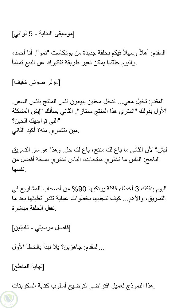 نموذج سكربت بودكاست: مقدمة حلقة تسويقية