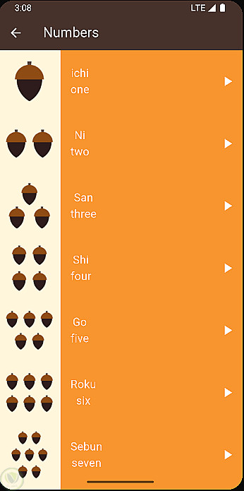التطبيق يدعم تشغيل الصوت لكل عنصر، مما يساعد المستخدم على تعلم النطق بشكل عملي.