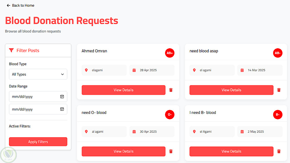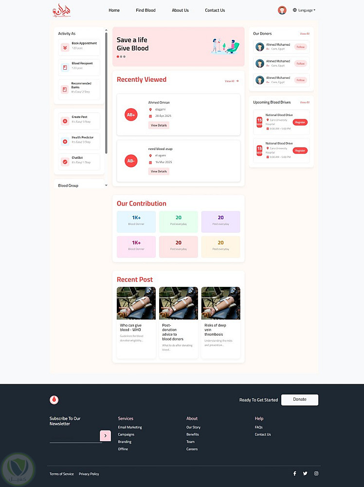نظام إدارة بنك الدم هو نظام متكامل لتنظيم عمليات التبرع، إدارة المخزون، وتتبع أكياس الدم بكفاءة، مع لوحة تحكم سهلة لإدارة العمليات. تم تطويره باستخدام ASP.NET Core مع تطبيق أفضل الممارسات لضمان الأداء وقابلية التوسع.
