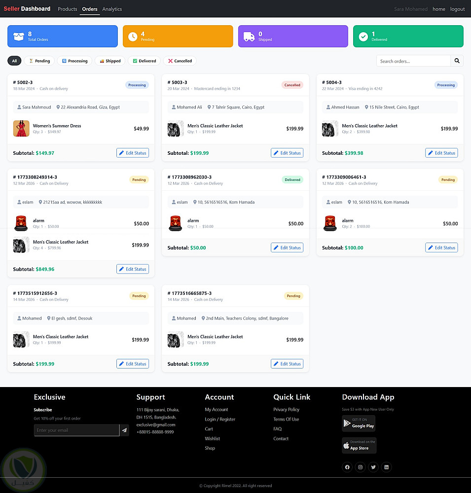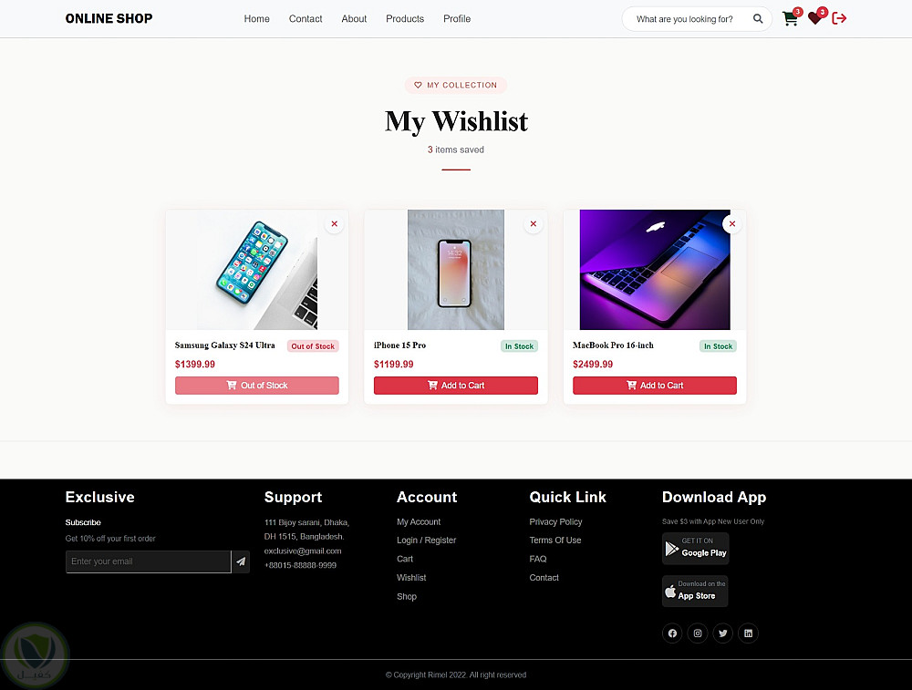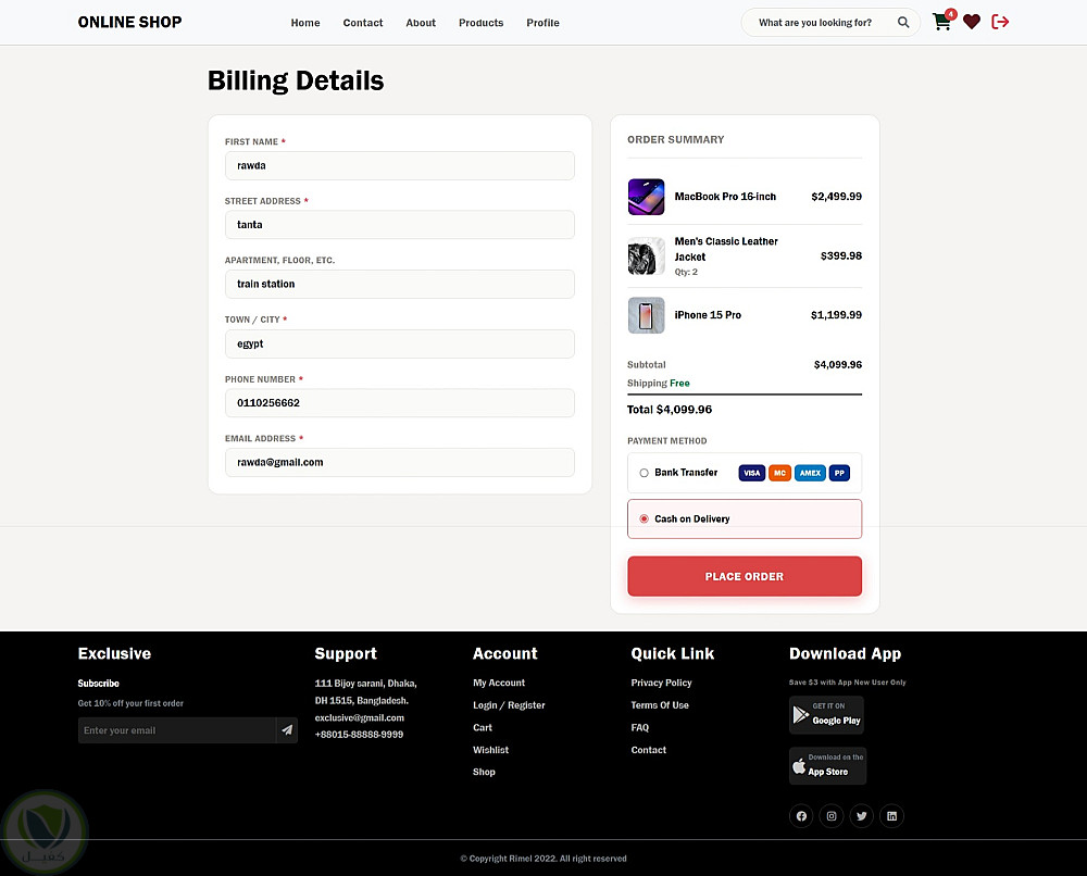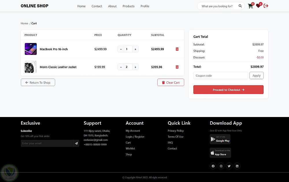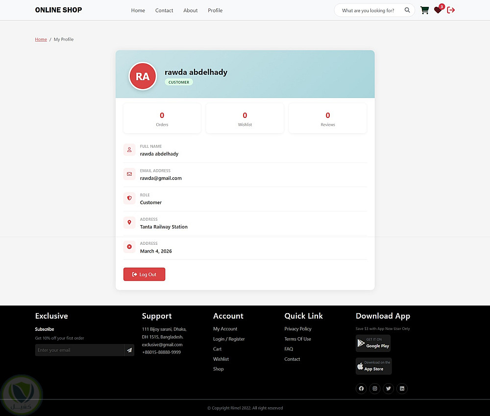 مشروع متجر إلكتروني (Online Shop) تم تطويره باستخدام HTML وCSS وJavaScript، يهدف إلى محاكاة تجربة تسوق حقيقية من خلال واجهة مستخدم تفاعلية وسهلة الاستخدام. يتيح المشروع للمستخدم تصفح المنتجات، إضافتها إلى السلة (Cart) مع إمكانية تعديل الكميات وحساب الإجمالي بشكل ديناميكي، بالإضافة إلى حفظ المنتجات المفضلة في قائمة (Wishlist). كما يتضمن عملية Checkout تجريبية تشمل إدخال بيانات المستخدم وعرض ملخص الطلب قبل إتمامه، مع استخدام Local Storage لحفظ البيانات وتحديث الواجهة بدون إعادة تحميل الصفحة.