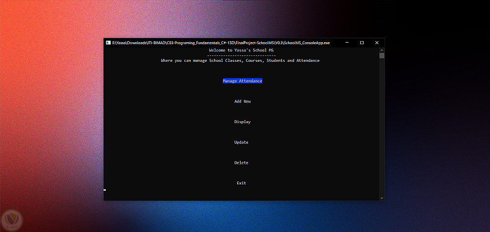 School Management System — Console App + SQLite