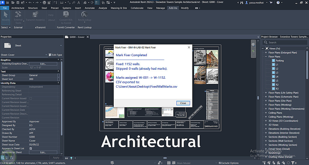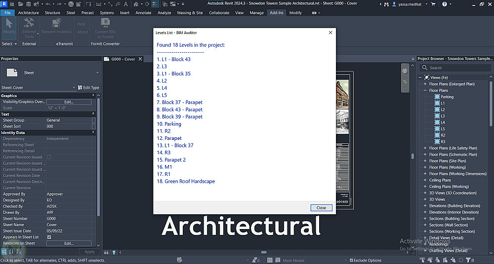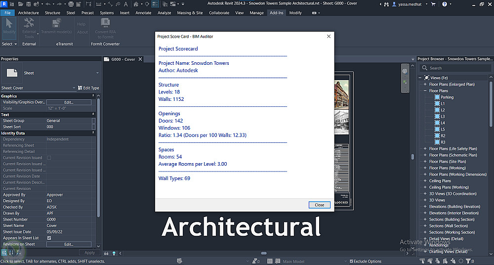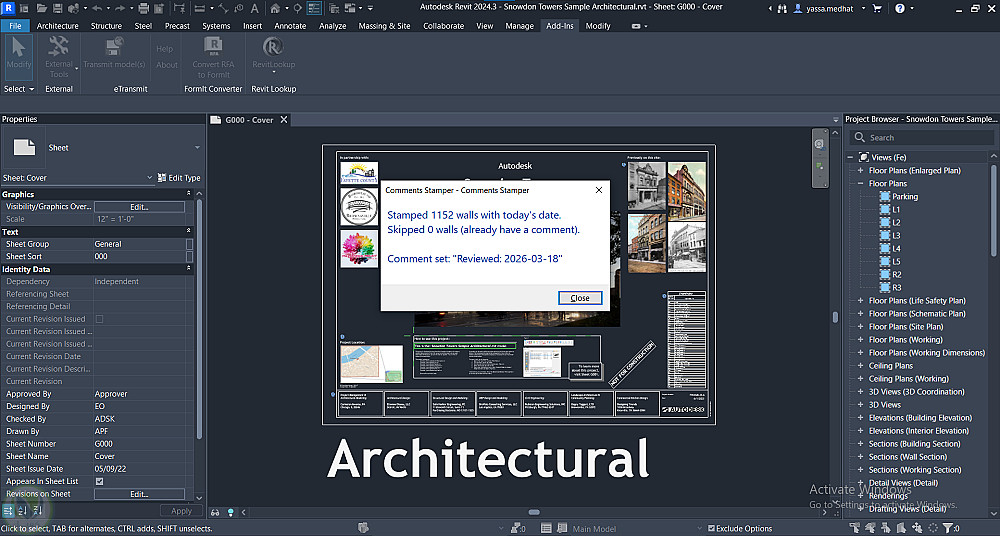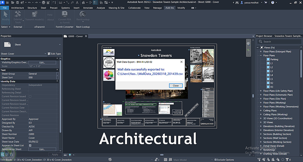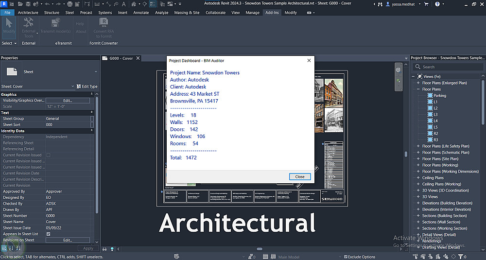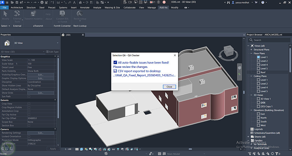 إضافات احترافية لبرنامج Autodesk Revit مبنية بـ C# وRevit API، تتيح للمهندسين مراجعة جودة نموذج BIM مباشرةً داخل Revit. تشمل الإضافات لوحة معلومات للمشروع، محلل للجدران مع تصدير النتائج إلى CSV، ومدقق QA تلقائي يرصد المشكلات ويقترح الإصلاح وغيرها.