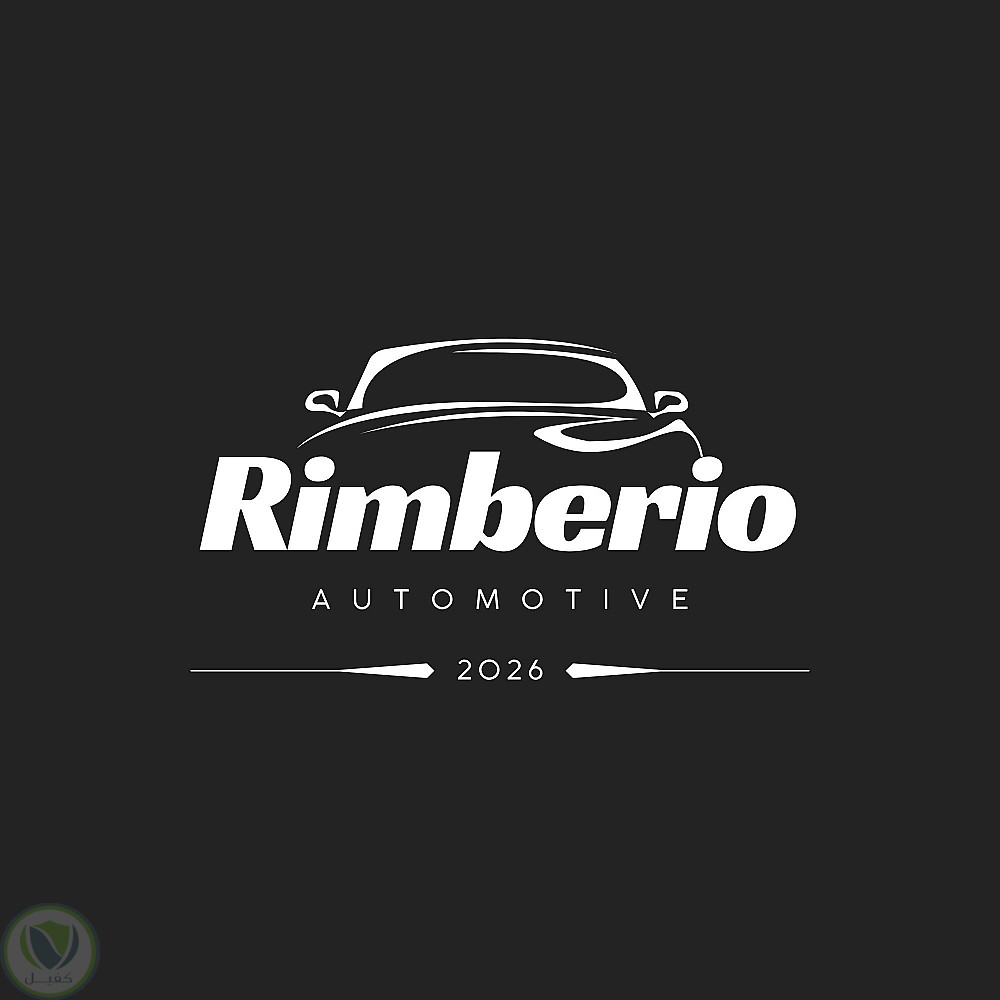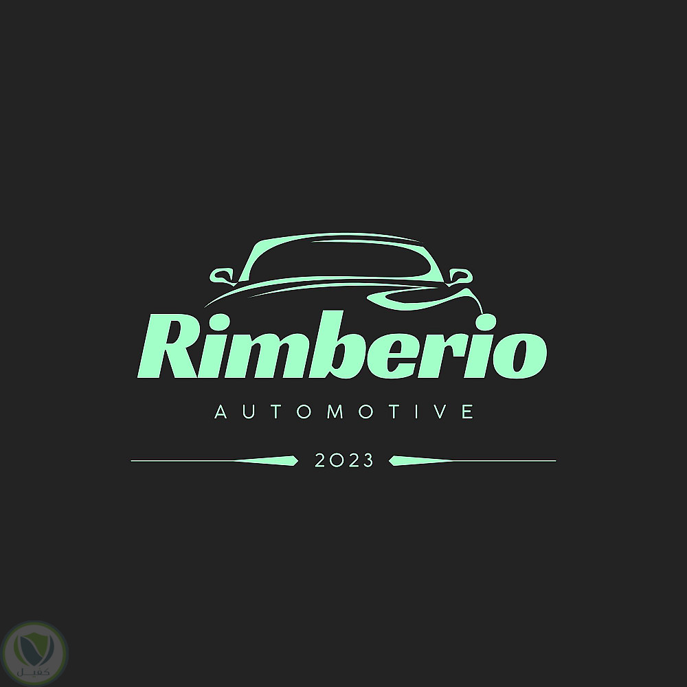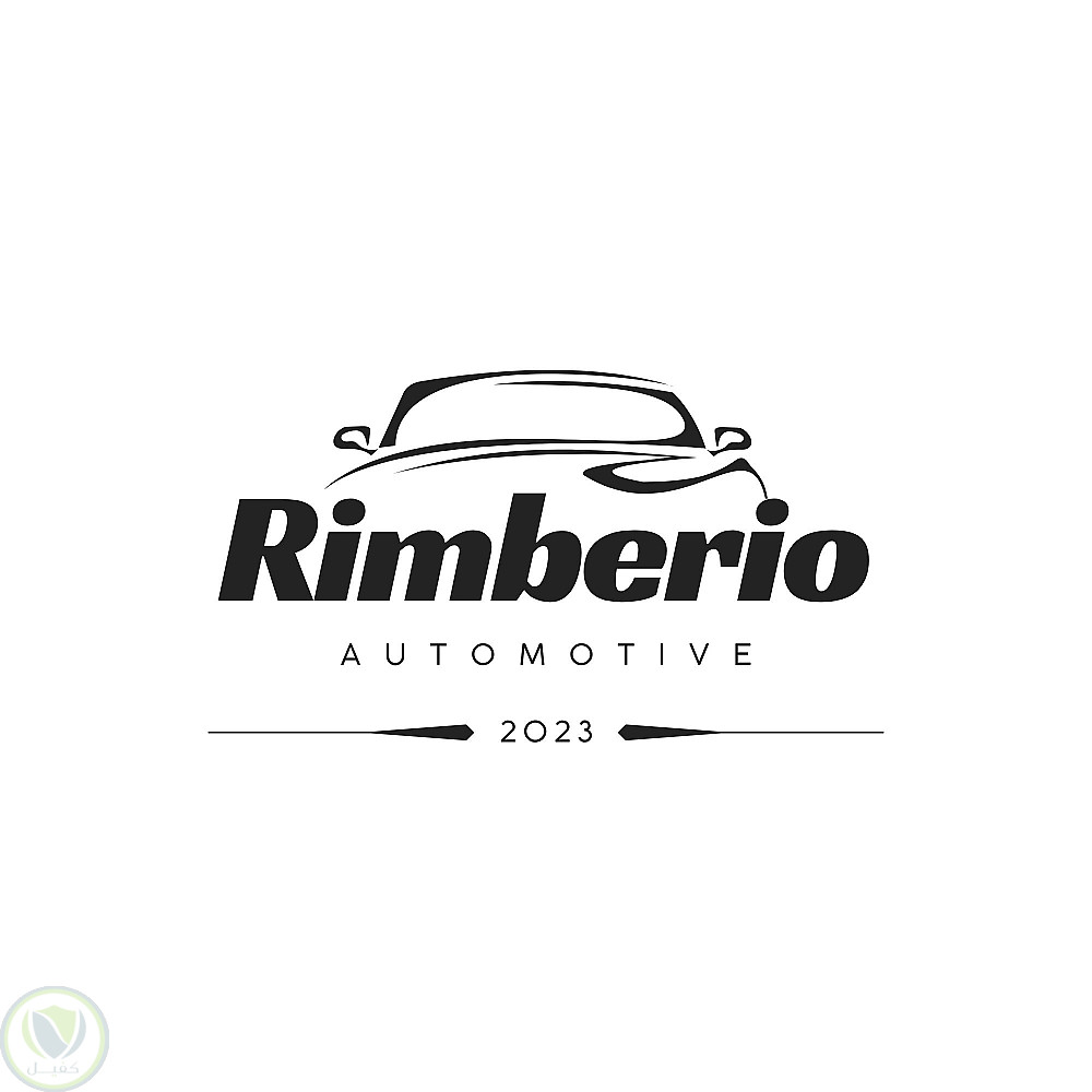 تصميم شعار احترافي لشركة سيارات يحمل اسم Rimberio Automotive، يتميز بأسلوب عصري وأنيق يعكس الفخامة والاحترافية في مجال السيارات. يتوسط التصميم رسم انسيابي لسيارة يعبر عن السرعة والدقة، مما يمنح الشعار طابعًا ديناميكيًا وجذابًا.
